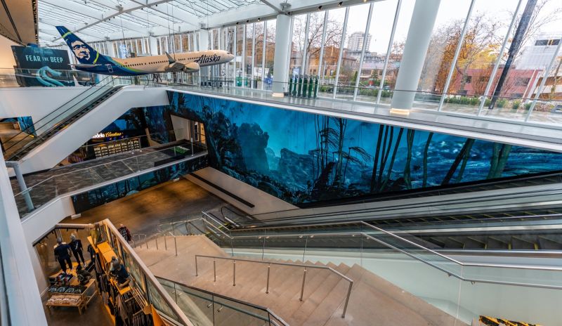 透過數位廣告內容與觀眾互動,簡潔流線的設計不僅強化訊息傳達,也能融入周邊建築環境。