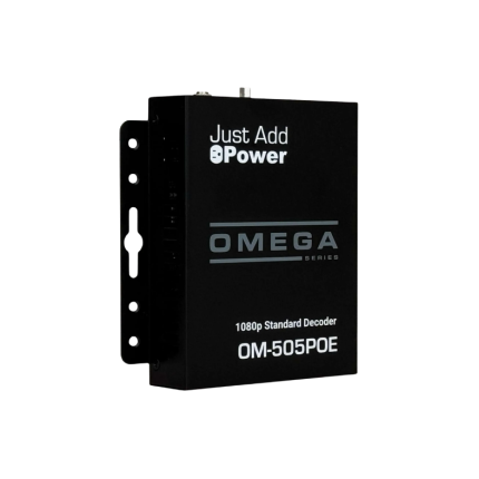 Omega 系列可透過 1Gb 網路,將 HDCP 1.4 內容分送至多個 HDMI 顯示器。其解碼器內建影像縮放器,可在 1080p 及更低解析度螢幕上實現無縫顯示。