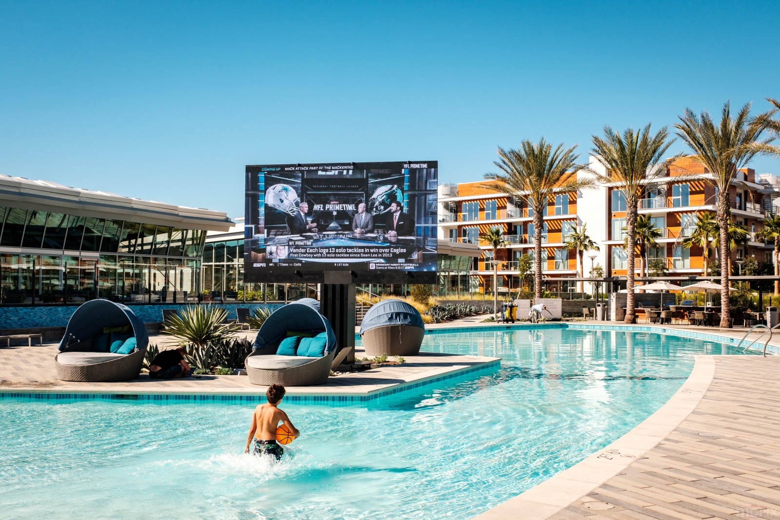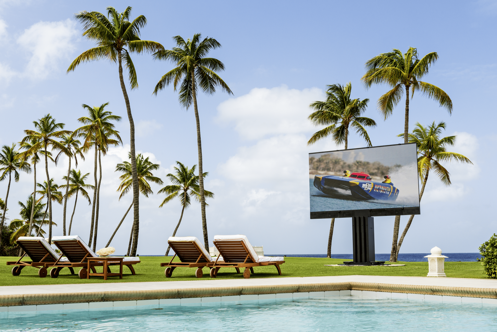 只需輕觸按鍵,Vertical 便能在 15 秒內順暢升至全高,一座高達 4.65 公尺的立柱以靜謐而自信的姿態現身。七片 MicroLED 面板以高度同步的節奏展開,精準銜接成一個完整、無縫的顯示平面。展開後,螢幕可旋轉最高達 135 度,靈活對應露台、泳池與休憩空間的配置,順應戶外生活的流動動線,並以深具建築共鳴的方式,優化每一條視線的指向。