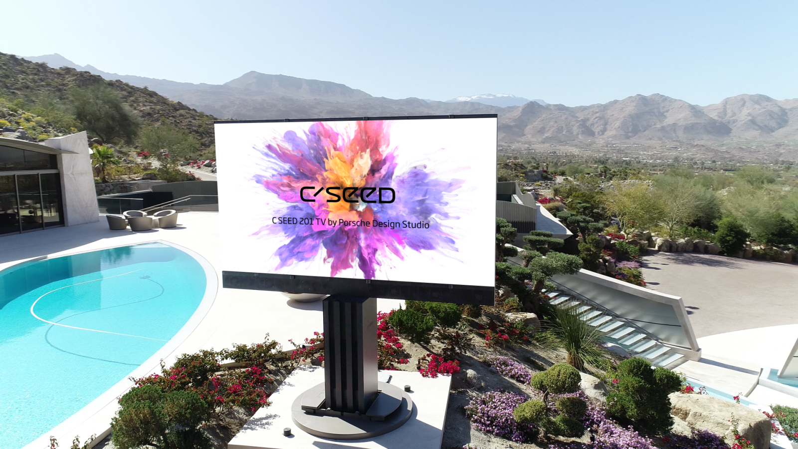 C SEED Vertical TV 是我們故事的起點——這件最初的經典之作,重新想像了戶外娛樂的無限可能。它與 Porsche Design Studio 攜手構思,開創了一種全新的建築類型:電視隱身於地面之下,守護景觀的純粹性,僅在需要時如同雕塑般的巨型立柱優雅升起。它不只是一面顯示螢幕,更是一種可轉化的建築語彙,在保留設計自由度的同時,為戶外生活注入嶄新的電影級體驗維度。
