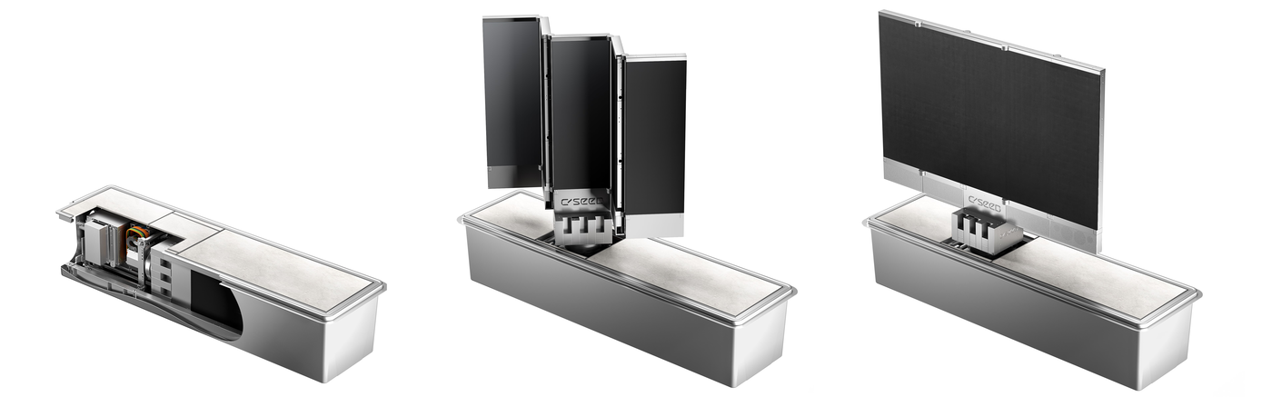 HLR 系列的每一個細節,皆以空間智慧為核心精心構思。電視巧妙收納於僅 85 公分(33.4 吋)高的精巧機構箱體中,並由先進的水平升降機構驅動。啟動時,螢幕以優雅流暢的動作展開,彷彿本就屬於周遭環境的一部分,自然融入整體空間。這是一項尊重空間、建築語彙與戶外生活節奏的科技設計,讓技術隱於無形,體驗卻格外動人。