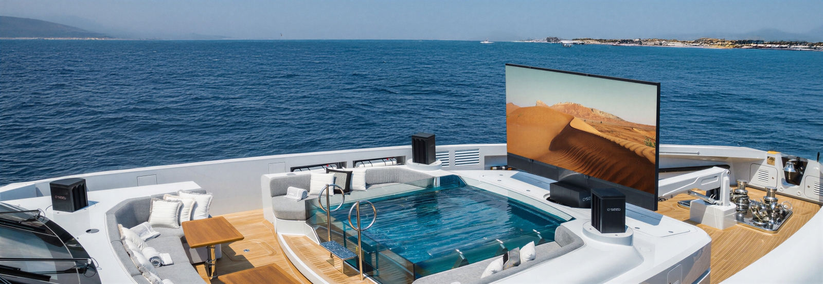 沒有兩艘遊艇是相同的,C SEED 的解決方案亦然。Supermarine TV 與其音響系統被設計為海上戶外日光劇院中最精巧、最洗鍊的動態機械解決方案。每一個專案皆由原廠團隊於內部單獨工程設計,所有組件均依甲板下方的實際空間條件進行調整。採用船用等級鋁合金與鋼材精心打造,Supermarine 系列無論應用於新船建造或改裝工程,皆能在技術卓越與造型簡約、經典設計之間取得完美平衡。