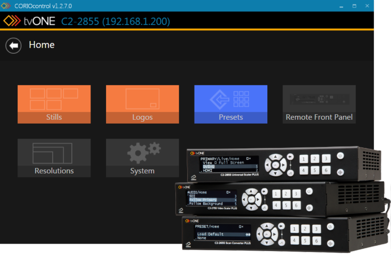 針對 C2-2000 系列影像處理器,tvONE 提供專屬 CORIOcontrol 管理平台。透過 IP 網路連線,技術人員無需親臨設備現場,即可進行全方位參數設定與即時管控,大幅提升系統整合的靈活性: